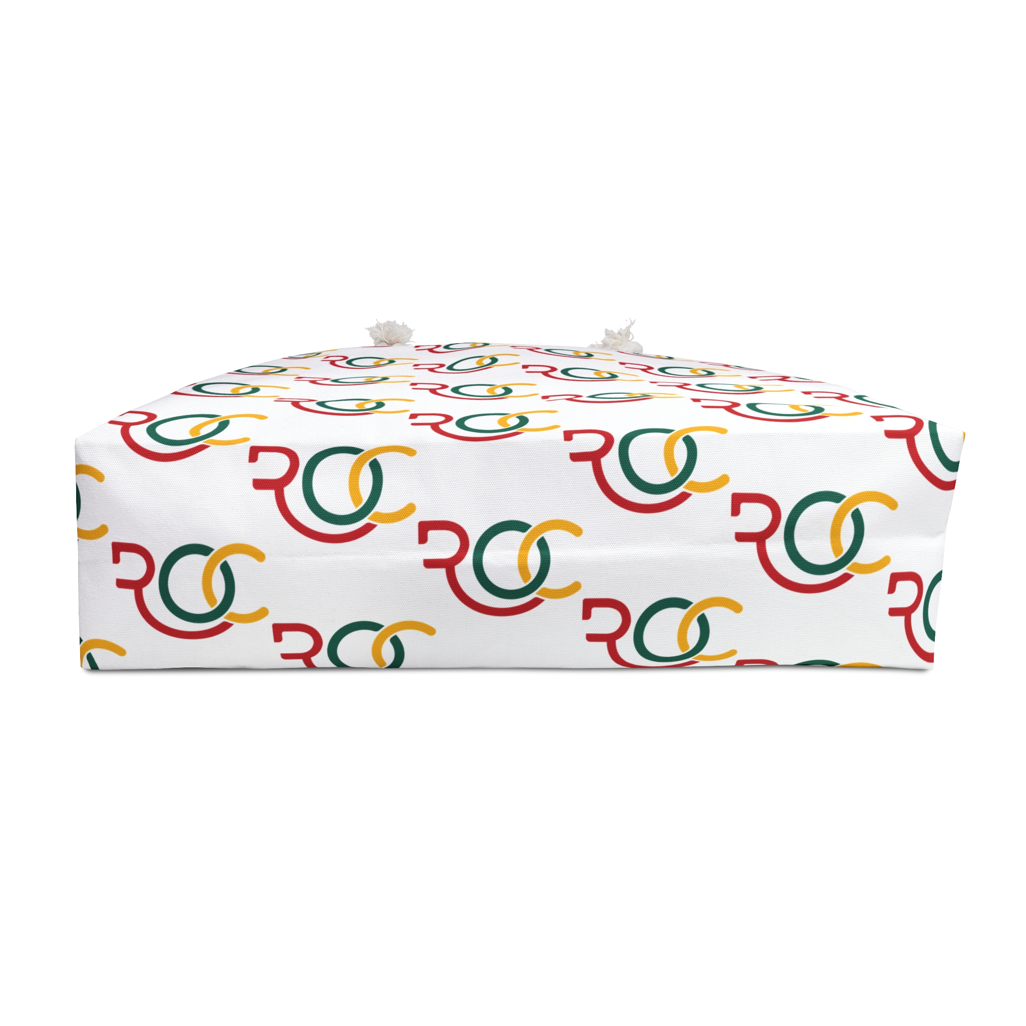 – 27″ cream cotton rope handles threaded through gold-color metal grommets